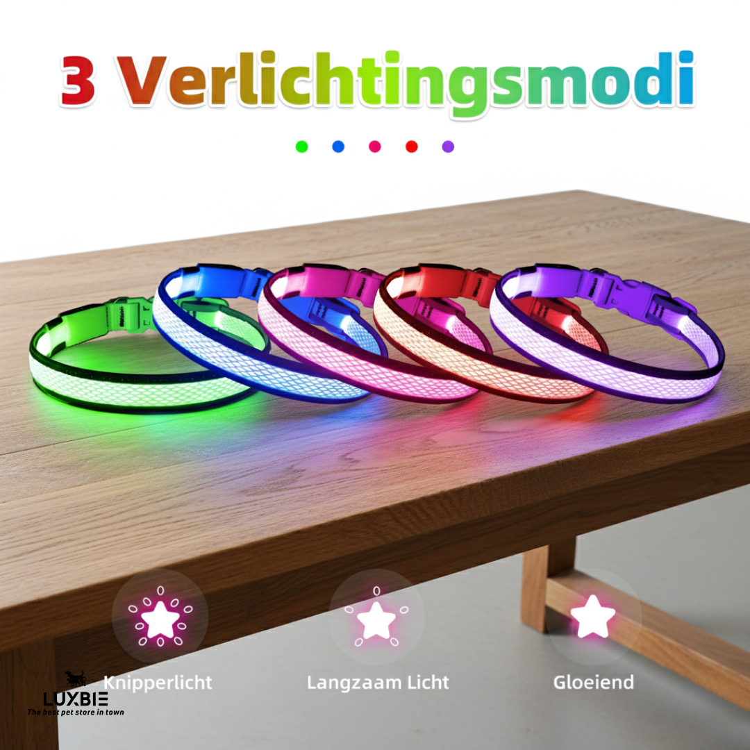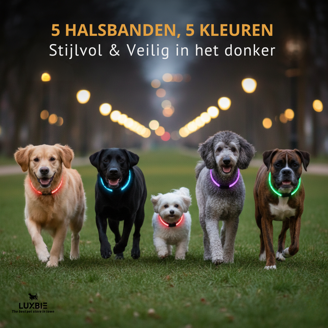 De Luxbie ZieMij 360 is een LED-halsband die rondom licht geeft, zodat je hond direct zichtbaar is — voor jou én voor verkeer. Het resultaat: één blik, volledige rust tijdens avond- en ochtendlopen.